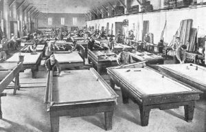 La maggiore diffusione del biliardo incrementò la produzione, così che nel 1813 quando Santi Restaldi ereditava dal padre arte ed industria, il gioco era ormai diventato il divertimento preferito della nobiltà e non solo. Il biliardo iniziò ad arrivare, infatti, sino ai circoli ed ai principali caffè dell’epoca, facendo nascere le prime sale da biliardo sempre più frequentate da giovanissimi, entusiasti del nuovo modo di giocare dovuto all’applicazione del cuoio all’estremità superiore della stecca. Innovazione portata, neanche a dirlo, dallo stesso Santi che si spense nel 1844. Il figlio Salvatore Restaldi continuò la tradizione paterna, specializzandosi nella costruzione delle sponde per rendere il biliardo un vero strumento di precisione. Le continue richieste lo spinsero, poi, entusiasta, ad allargare l’officina, che oramai assumeva le sembianze di un vero e proprio stabilimento industriale.