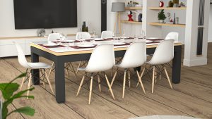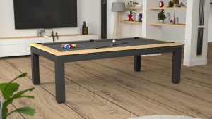 Dedalo, è il biliardo che si trasforma in tavolo da pranzo dalla linea leggera semplice e snella.