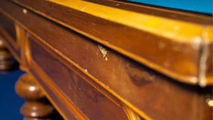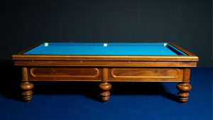 - Biliardo d’occasione rifinito in tinta “noce chiaro”, con esaltazione delle tonalità e delle venature del legno.