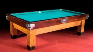 Biliardo antico originale Ottorino Restaldi con buche strette, elegante e rustico allo stesso tempo. Biliardo d’occasione, visibile a Roma presso unica sede Restaldi sulla via Salaria, assieme a decine di altri modelli di biliardi usati. Grazie alle sue dimensioni ridotte, è facilmente inseribile in ogni tipo di ambiente.