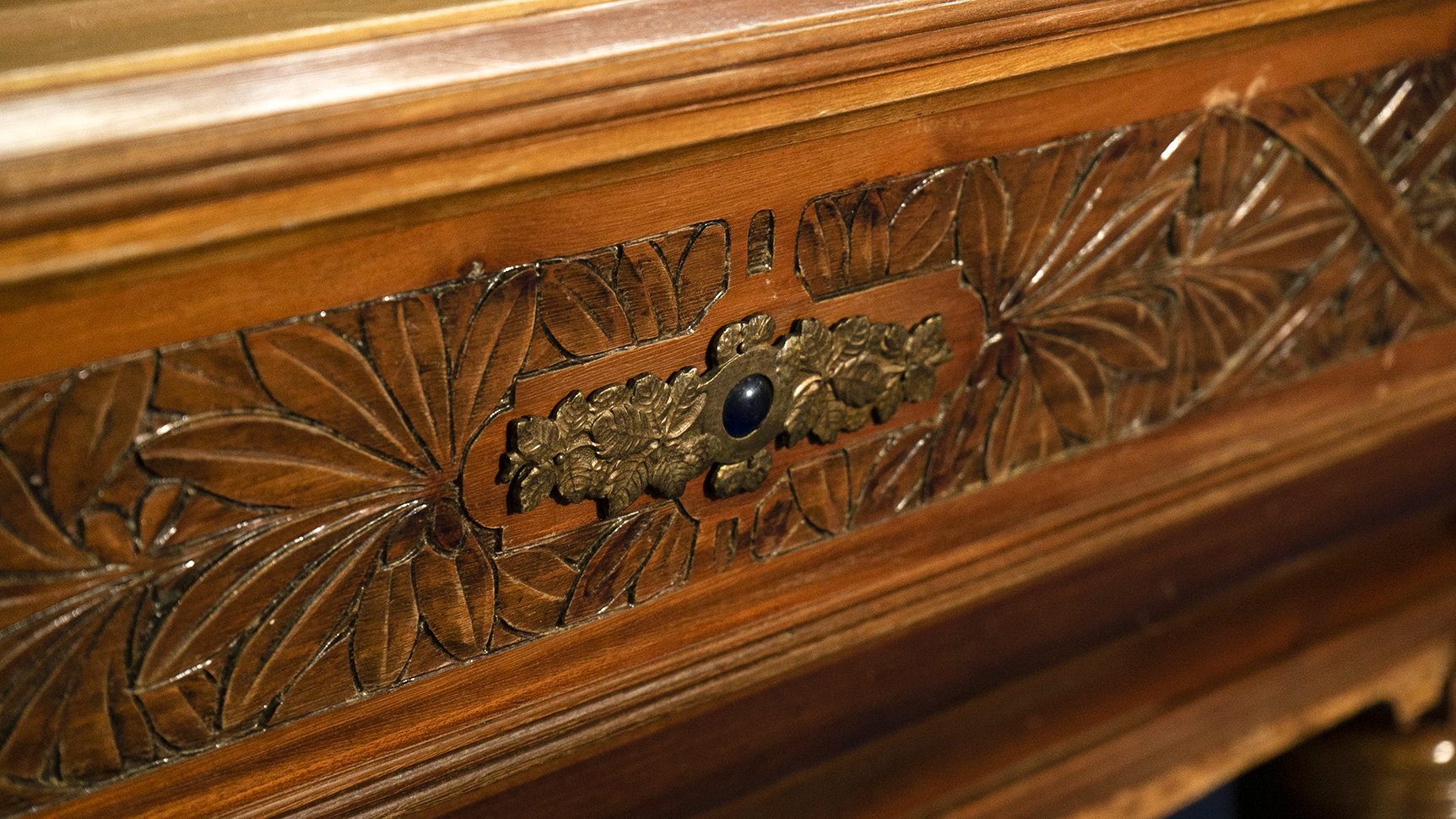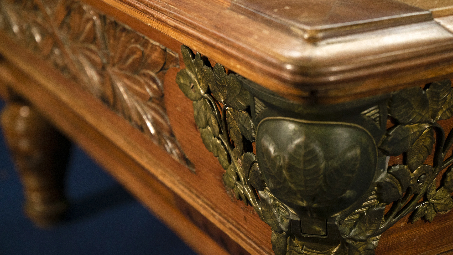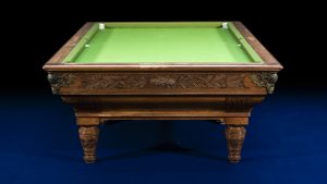 - Furniture constructed of Walnut and inlaid by hand results with a “lighter” and “slimmer” stylistic line than classic antique billiard tables due to the special shape of the frame.