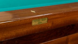 The Mari 32 billiard table is on display at Restaldi, in its one big location on Via Salaria, together with many other models already assembled and ready for you.